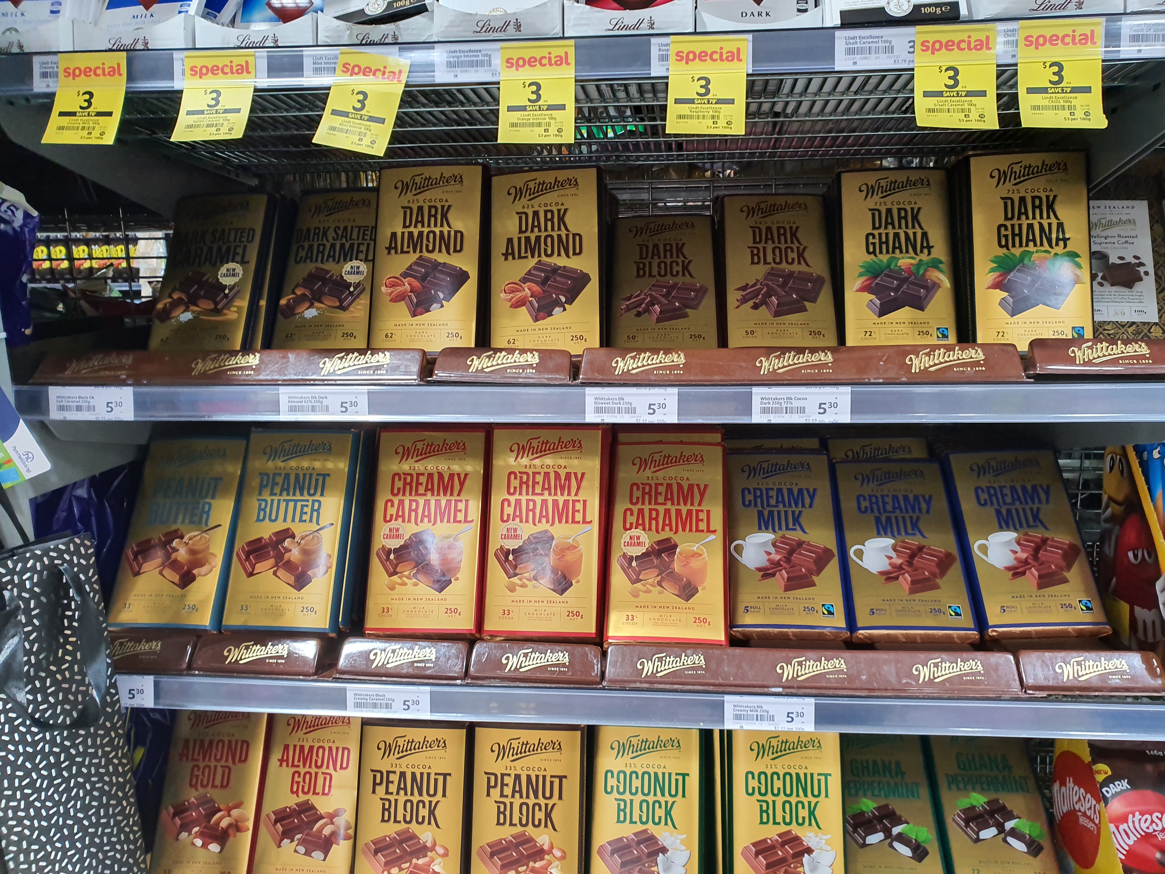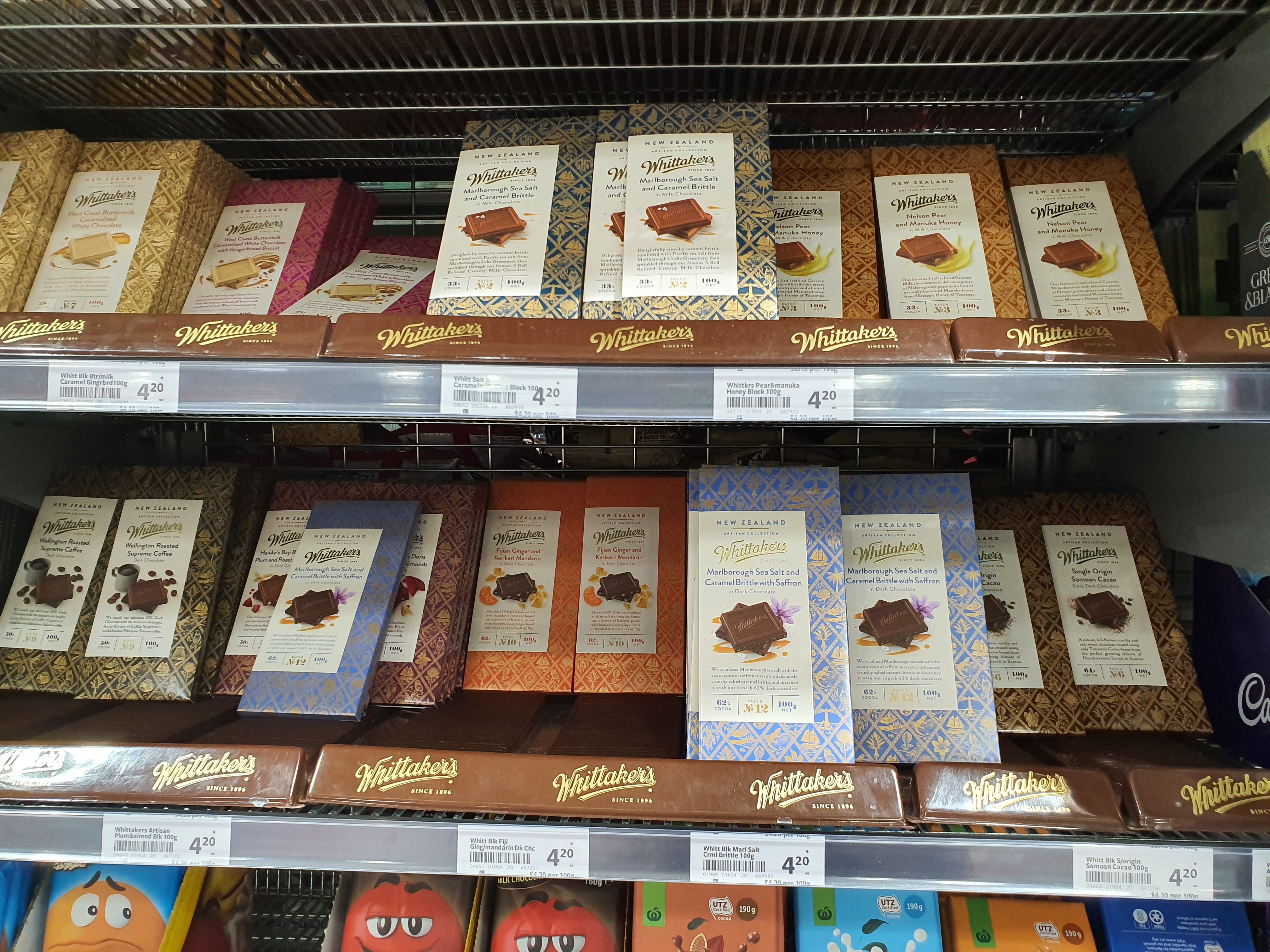 하지만 저는 소고기가 아닌 초콜릿을 구매해야 하기 때문에 휘태커스 초콜릿들이 있는 코너로 향합니다. 저는 초콜릿을 잘 먹지 않아서 몰랐는데 이 초콜릿이 뉴질랜드에서 유명하고 투썸에서도 판매중이라고 하더라구요.