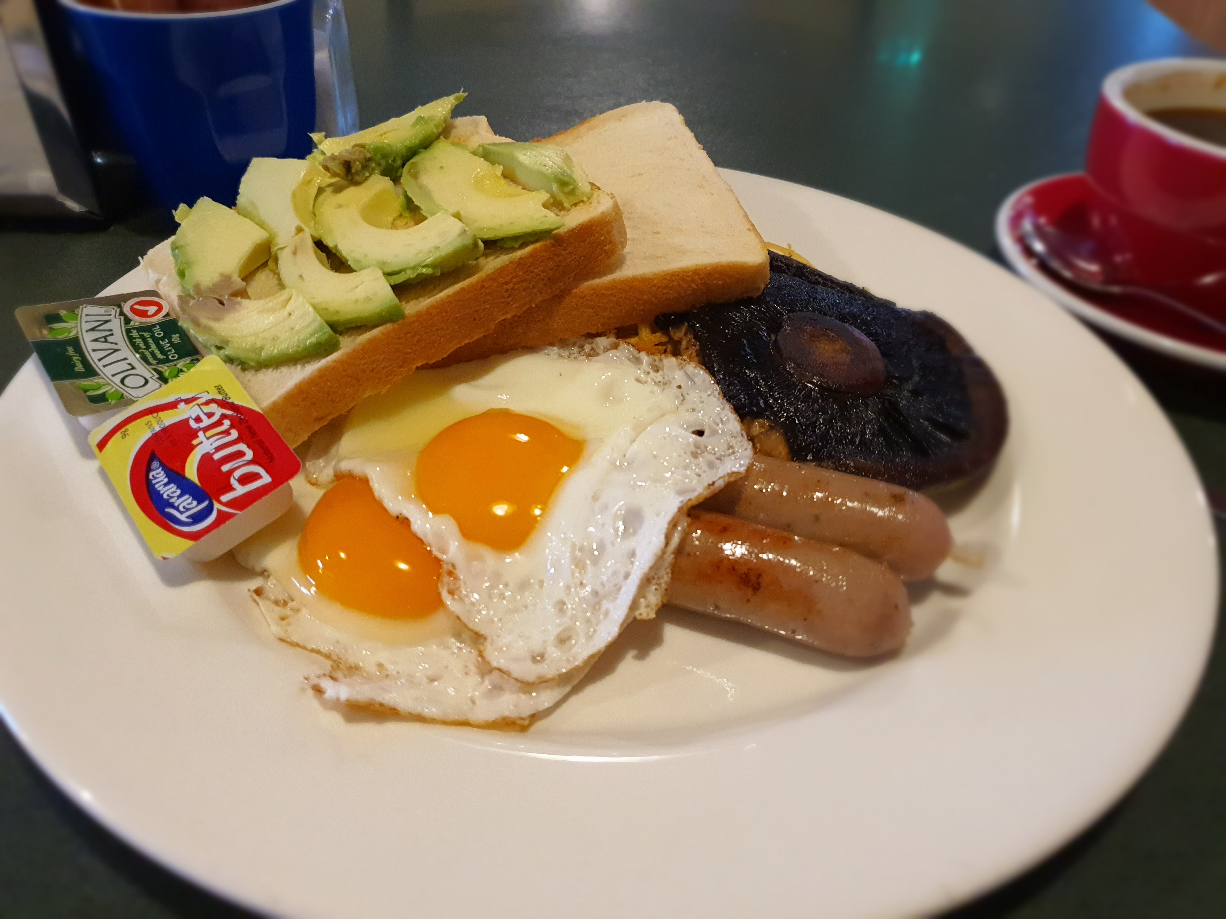 식당 내부는 위 사진처럼 꾸며져있었는데 외국감성이 느껴지는 음식점이었습니다! 카운터에 가서 주문을 하고 자리에 앉으면 직원분이 서빙을 해주는 구조입니다. 저는 다양한 메뉴 중 "Two Eggs Plus" 메뉴를 주문했는데 식빵 2조각과 계란 2개, 소시지 2개, 큰 버섯이 포함되어있는 메뉴였고 아보카도와 커피를 추가했습니다. 가격은 총 한화 1.7만원 정도 나온 것으로 기억합니다.