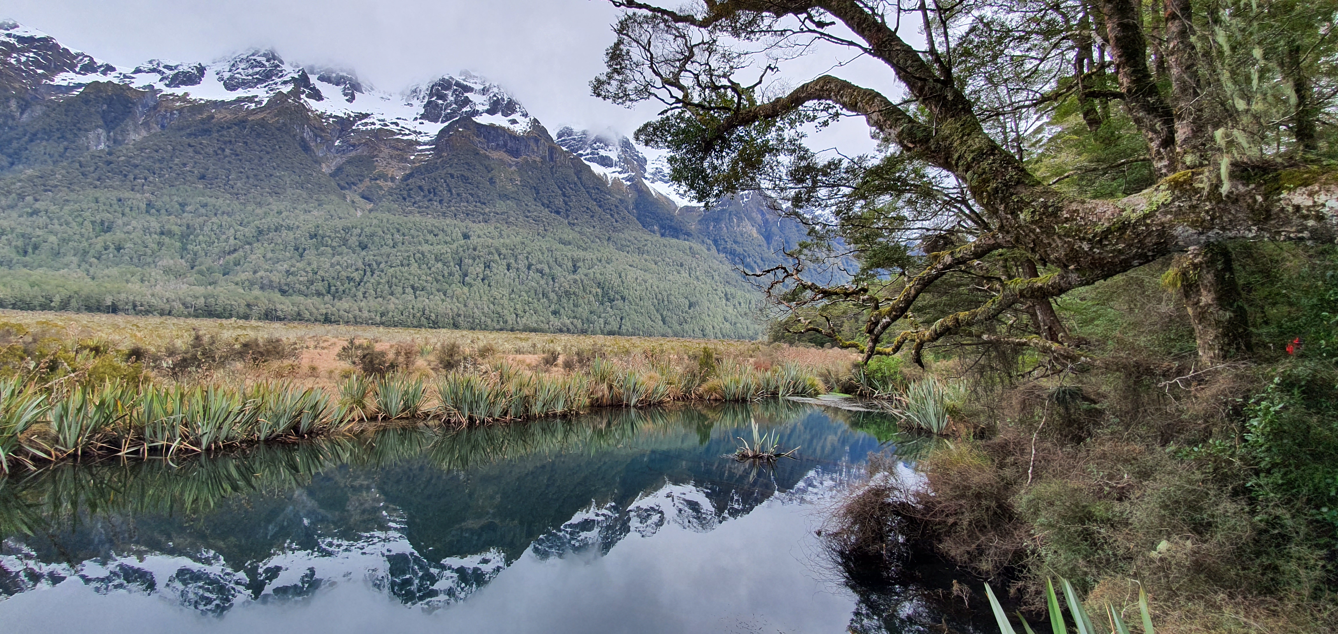잔잔한 호수를 보면 뒷 배경에 보이는 산이 그대로 들어가 있는 모습까지 볼 수 있는데 호수에 비친 설산의 모습을 보는것도 나름 매력이 있더라구요! 약 30분간 미러레이크에서 자유 투어를 마친 뒤 다시 버스에 탑승하여 밀포드 사운드로 이동합니다.