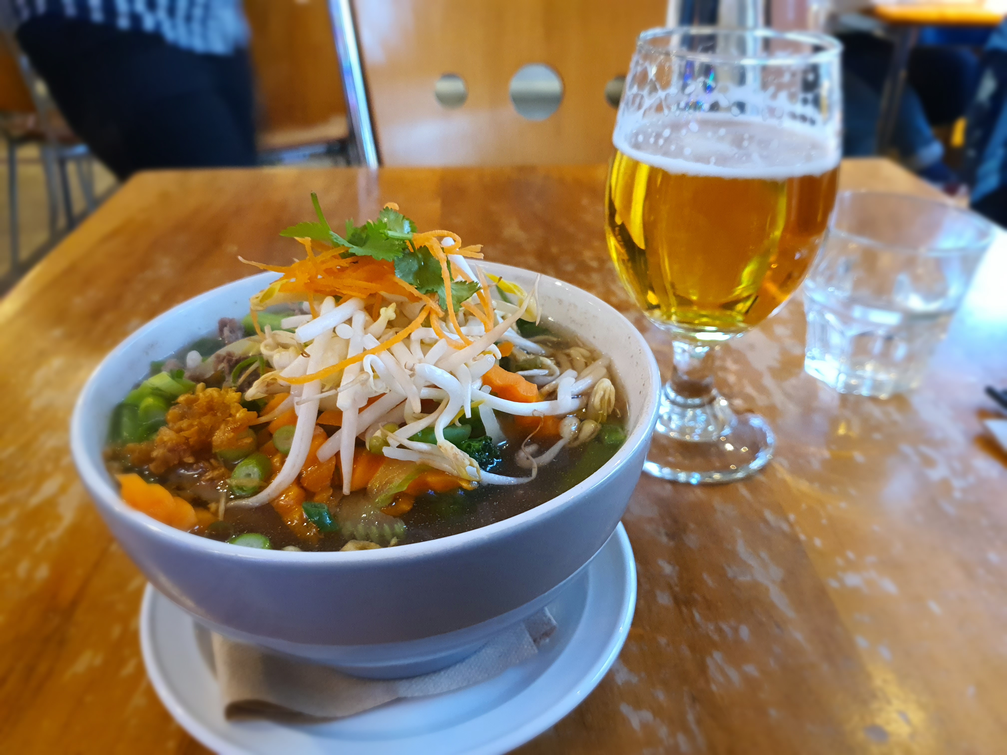 쌀국수가 나오고 사진을 급하게 찍은 뒤 국물을 한 스푼 먹었는데 눈이 번쩍 뜨이는 맛이었습니다! 사장님이 한국분이셔서 그런지 한국인 입맛에 너무 잘 맞았고 제가 먹어본 쌀국수 중에서 가장 맛있었습니다!(동남아는 아직 못가봄 ㅎㅎ) 폭포수를 맞아서 남아있던 추위가 쌀국수 국물과 함께 싹 내려가는 느낌이었고, 거기에 맥주까지 한 잔 하니 하루의 마무리가 완벽했습니다!