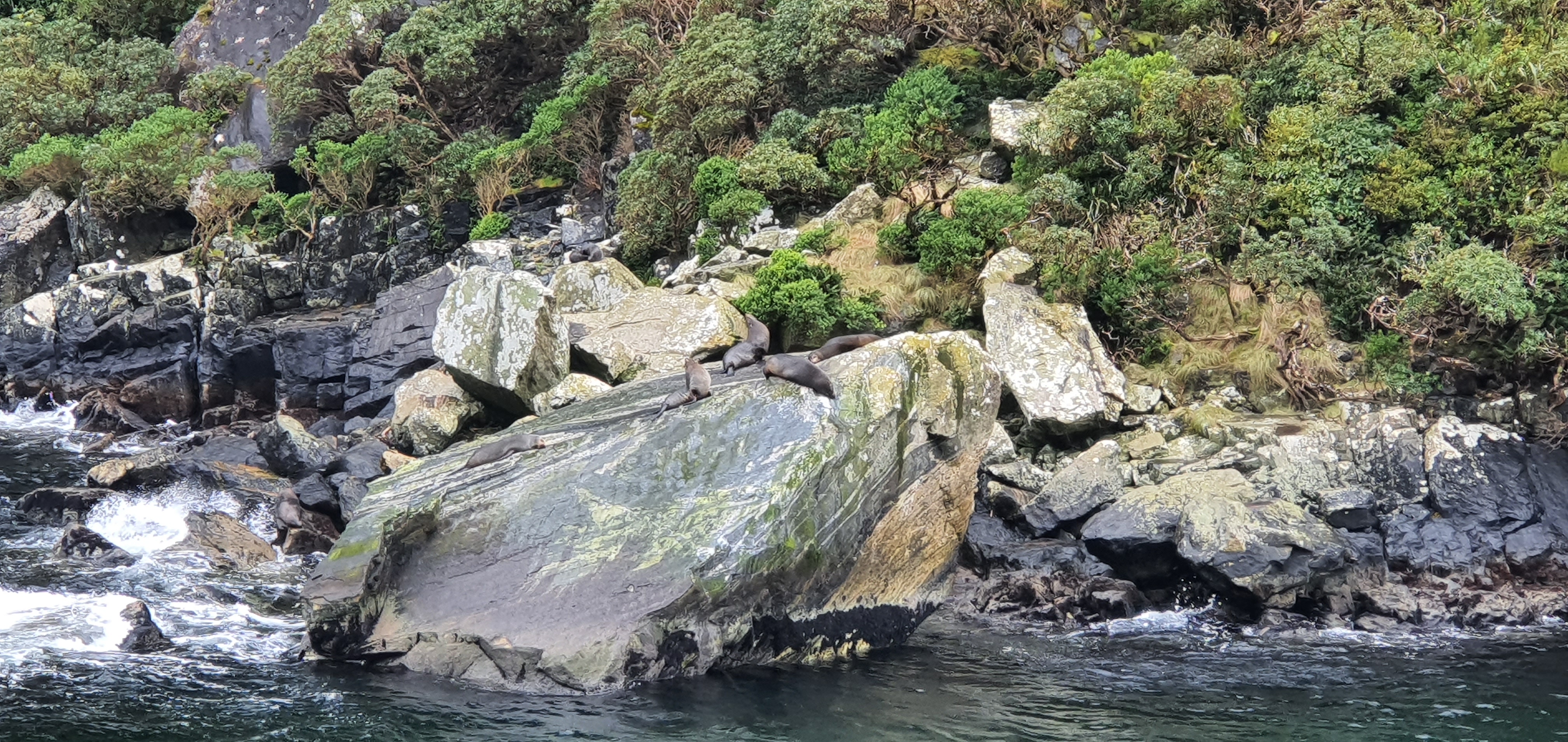 밥을 먹은 뒤 밖으로 나가서 구경을 하기 시작합니다! 크루즈 업체마다 다르긴 하지만 제가 이용한 Real Journeys 크루즈는 영어, 일본어, 중국어 뿐만 아니라 한국어로도 가이드를 해줬습니다! 자세히 보니 각 나라에서 온 학생으로 보이는 분들이 방송실에서 포인트들을 지나갈때마다 번갈아가며 안내를 해주시더라구요! 덕분에 밀포드사운드 각각을 조금이나마 이해하며 감상할 수 있었습니다!