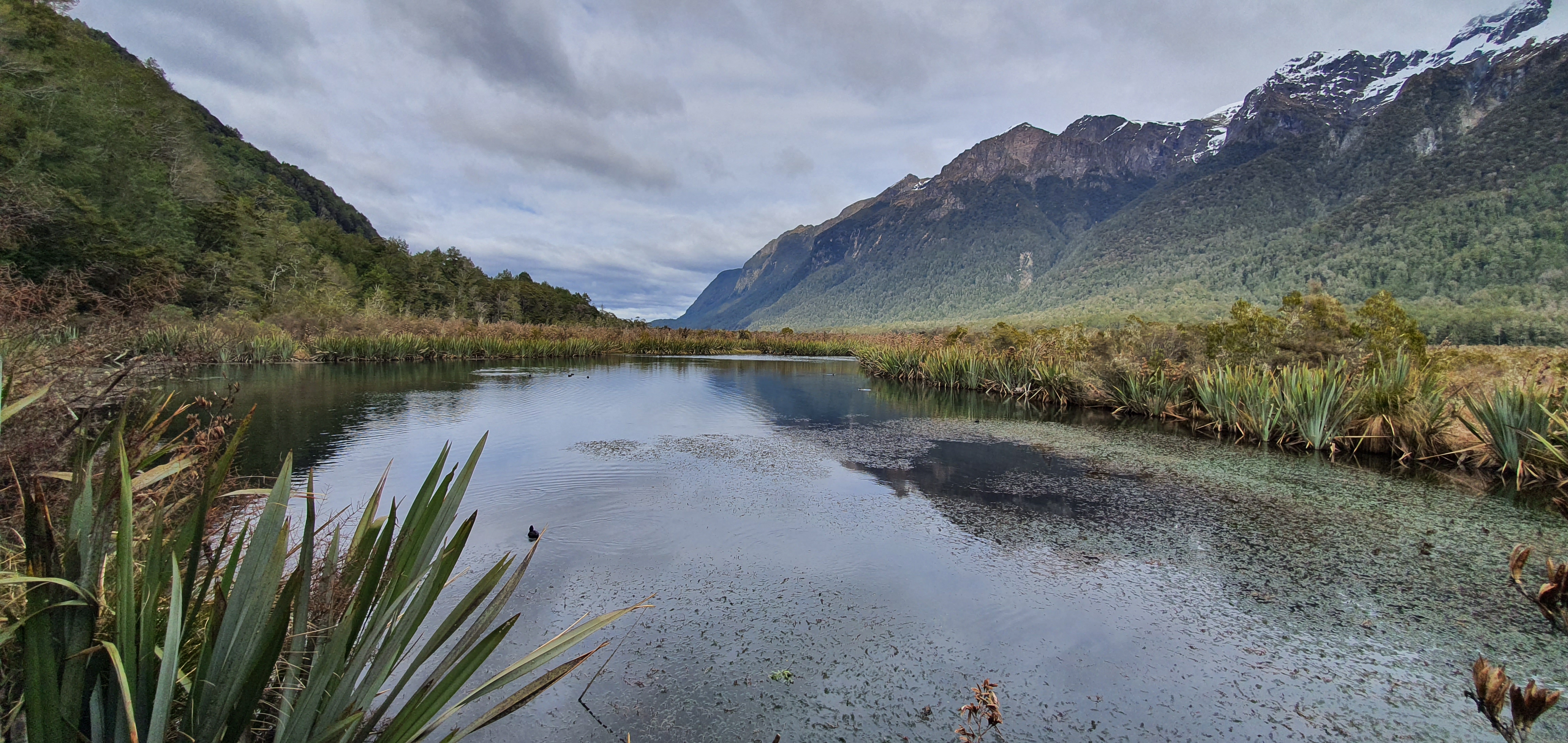 버스 기사님이 가이드 겸 기사님이셨는데 간단한 자기소개 후 밀포드사운드에 대한 설명과 가는 길 중간에 특이한 점들이 있으면 설명해주십니다(물론 영어로요^^;;).. 아침에 일찍 일어나기도 했고 아침부터 버스를 놓칠뻔한 상황들 때문에 피곤한 상태에서 영어를 들으니 스르륵 잠이 들었고 버스가 멈춰서 눈을 떠보니 간단한 아침을 먹을 수 있는 휴게소에 도착했습니다! 도착해서 간단히 토스트를 하나 먹고 다시 버스를 타고 이동하다보면 첫 번재 목적지인 미러레이크(mirror lake)에 도착합니다.
