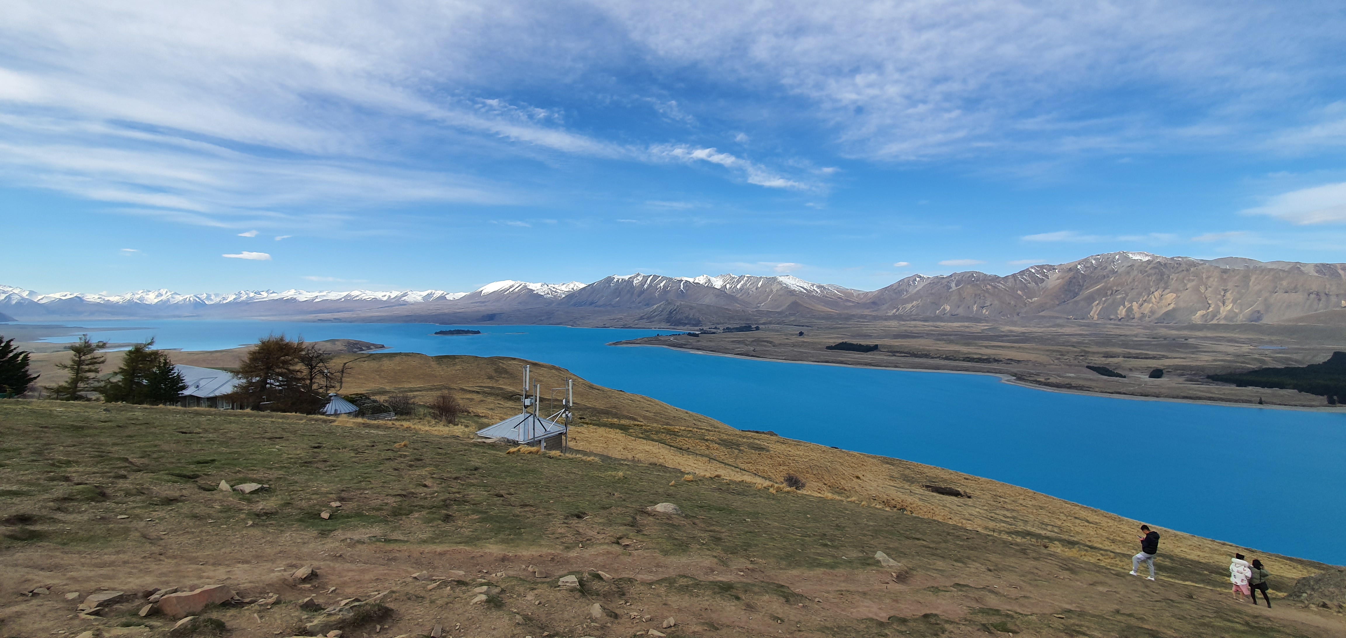 조금만 걸어 올라가면 테카포호수를 위에서 바라보는 뷰를 만나실 수 있습니다! 바람도 시원하게 불면서 이런 뷰를 감상하고있으니 가슴이 웅장해지는 느낌이 들더라구요!