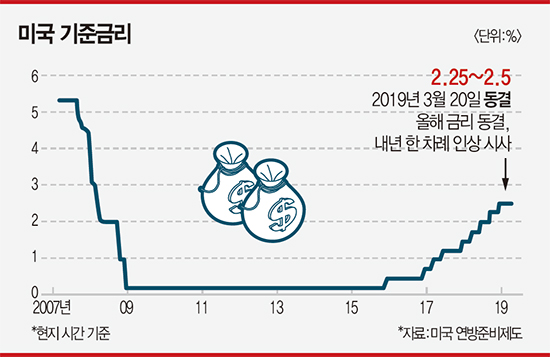 다행스러운 점은 2019. 03. 20 미국의 중앙은행인 연방준비제도(Fed. 연준)가 기준금리를 현행 2.25∼2.5%에서 동결을 결정하면서 국내 증시 변동성 부담은 한숨 덜게 되었습니다. 이에 따라 우리나라의 금리가 인하될지는 조금 더 지켜봐야 할 것 같습니다. 미국 금리가 지속적으로 인상되는 경우 달러에 투자하는 것이 높은 수익률을 낼 수 있을 것이고, 동결되는 경우는 미국쪽으로 흘러들어 갈 자본들이 다른 나라들로 흩어지기 때문에 이에 따른 투자 전략을 세워야 할 것입니다.