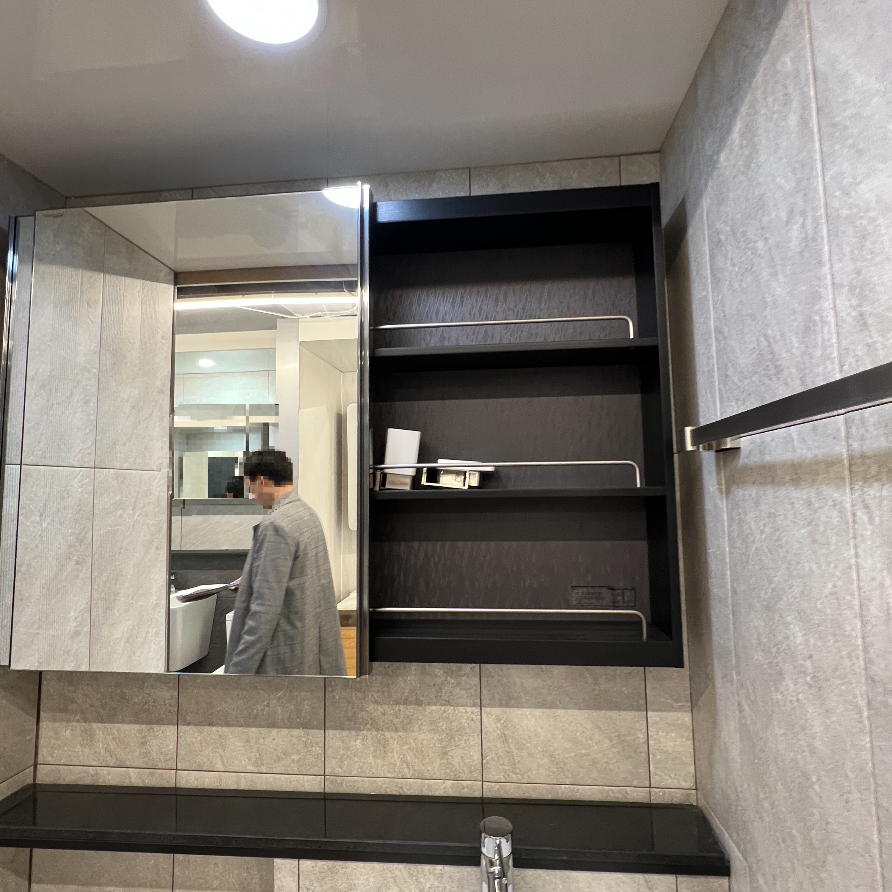 저희는 욕실이 좁은 만큼 거울장은 크게 2등분 하여 2도어로 선택했고, 내부 색상은 화이트로 선택했습니다.