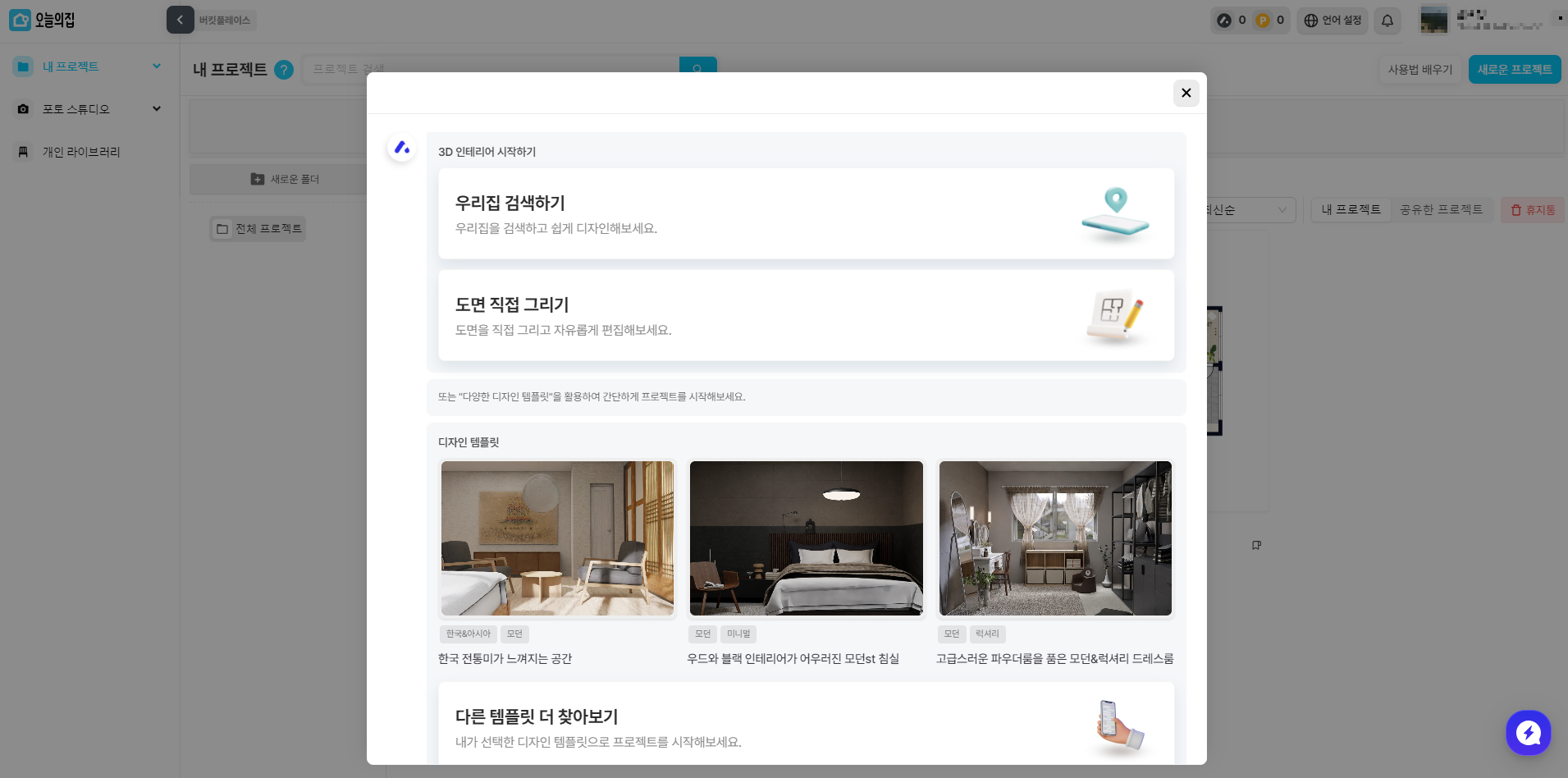 오늘의집 3D 인테리어 시작하기