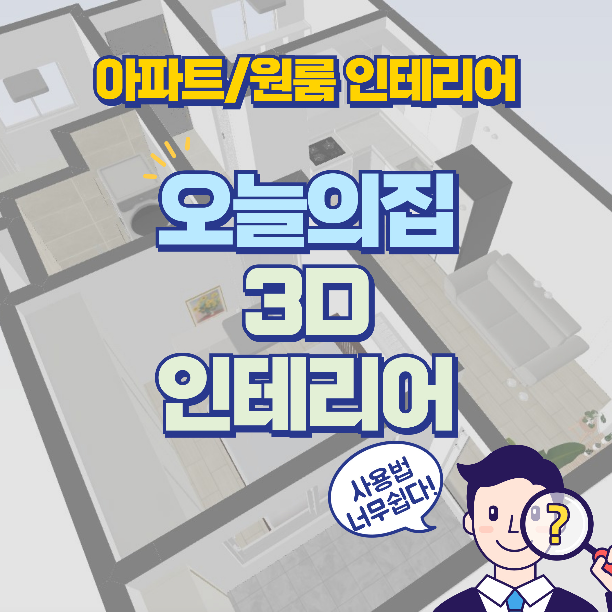 아파트 이사를 앞두고 가전, 가구 배치를 어떻게 할지 고민이신 분이나 인테리어를 하고싶은데 어떤게 잘 어울릴지 감이 안온다 하시는 분들은 오늘의집에서 제공중인 3D 인테리어 툴을 사용하시면 쉽게 내가 원하는 것이 무엇인지를 확인하실 수 있어서 추천드립니다.