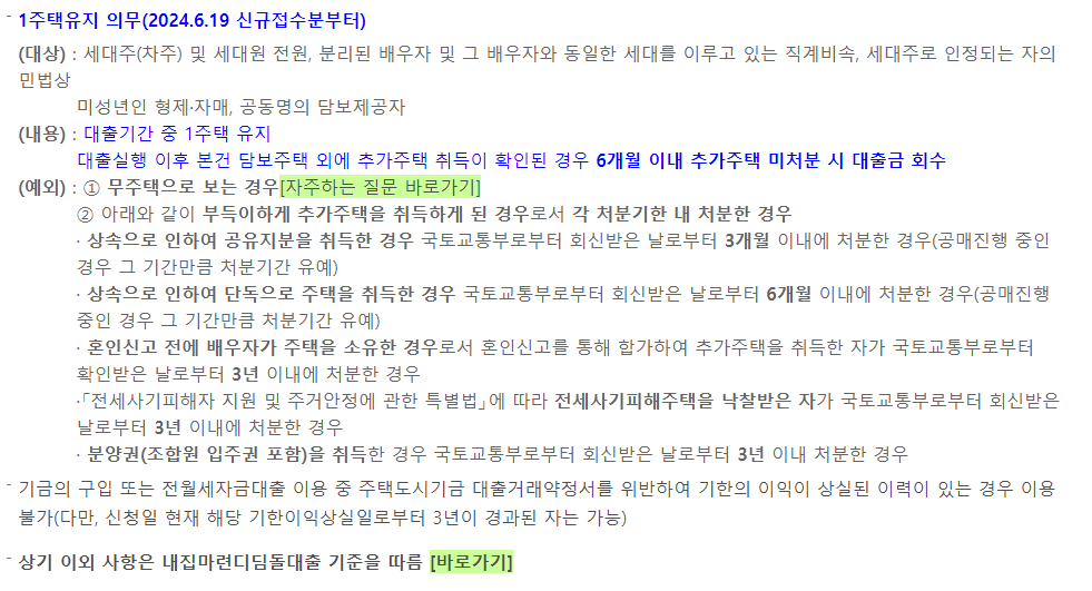 신생아 특례대출을 유지하려면 대출 기간 중 세대주 및 세대원 전원의 1주택 유지 의무가 있습니다. 대출기간 중 1주택을 반드시 유지해야 하고, 대출실행 이후 추가주택 취득이 확인된 경우 6개월 이내 추가주택 처분하지 않으면 대출금이 회수되니 신생아 특례대출을 원하시는 분들은 꼭 1주택 유지 의무가 있다는 점을 기억하세요!