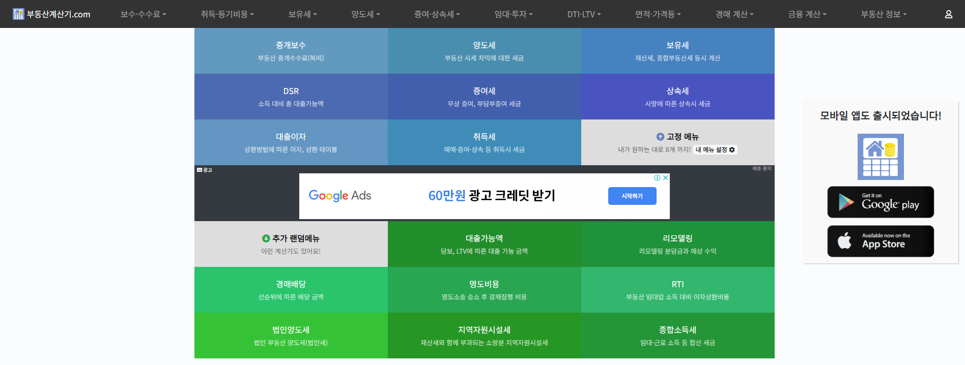 아래 부동산 계산기 사이트로 접속하셔도 되고, "부동산계산기" 앱을 다운받으셔서 사용하셔도 됩니다!