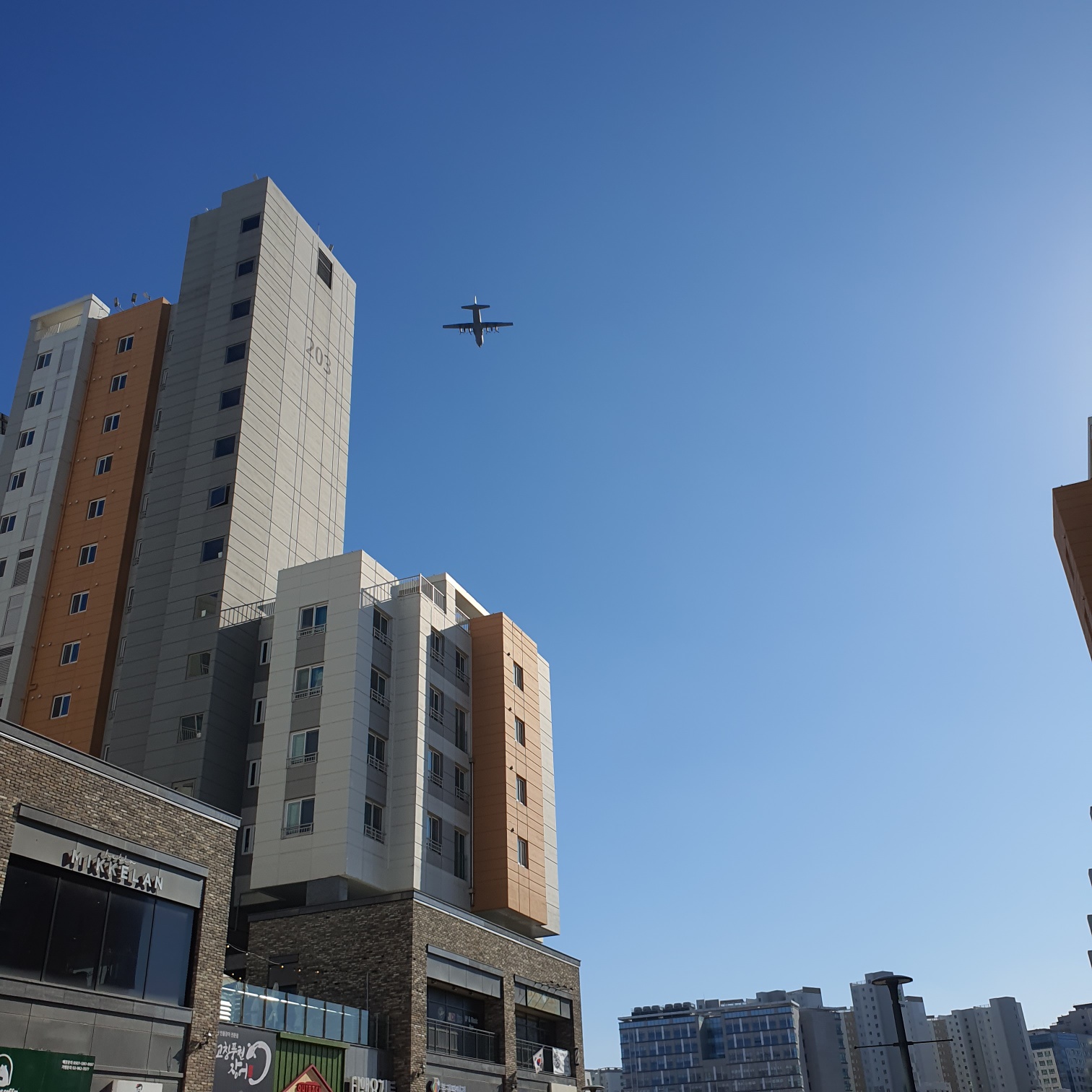 한 가지 특이했던 점은 위례신도시에서는 비행기가 정말 많이 보였습니다. 과장 조금 보태면 버스보다 비행기가 더 많이 날아다녔는데요, 자세히 보니 일반 비행기와는 다른 군용 수송기가 많았고 전투기들도 종종 포함되어 있었습니다. 아마 위례신도시가 서울공항 근처에 위치해있어서 이륙, 착륙하는 군용기가 많아서 그런 것 같았습니다. 밖에 돌아다닐땐 비행기 소음이 조금 느껴졌지만 실내에서는 어떨지 궁금했습니다.