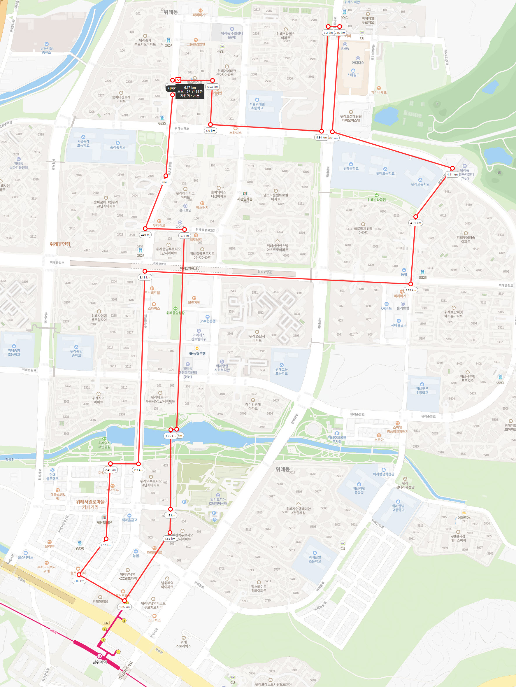 임장 루트는 위처럼 돌았습니다. 모든 단지를 다 돌아보면 좋겠지만 날씨가 너무 추웠고 일단 위례의 전체적인 분위기를 한 번 느껴보자 해서 위례 중앙광장을 포함한 루트로 짰고, 행정구역의 변경으로 인해 달라지는 점들이 있는지를 보기위해 서울시 송파구, 성남시 수정구, 하남시를 모두 가보는 루트로 짰습니다.