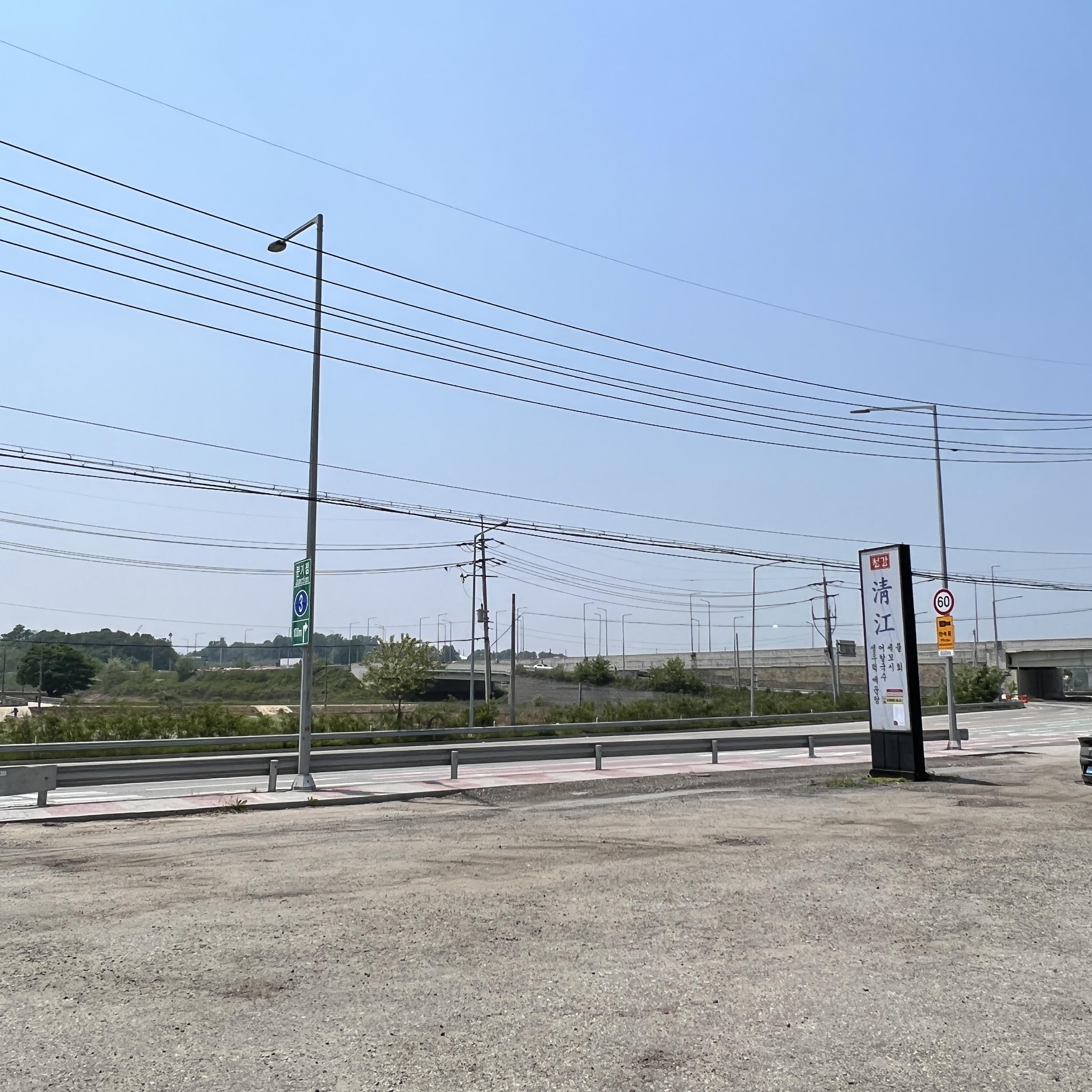 청강 주변 환경을 보면 정말 바로 앞에 큰 도로가 있고, 그 앞에는 논이 펼쳐져있는 휑 한 곳입니다.