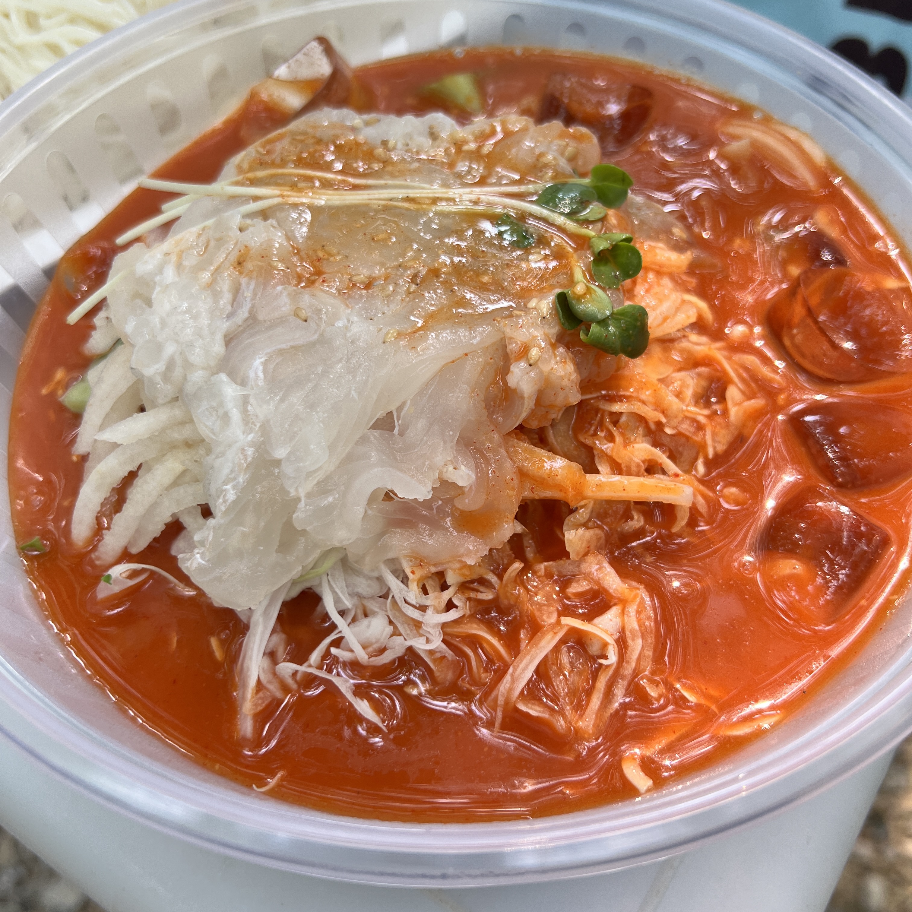분명 1인분을 시켰는데 소면이 6덩이나 들어있었고, 채소도 푸짐하게 들어있어 2인분을 시킨 줄 알았습니다.