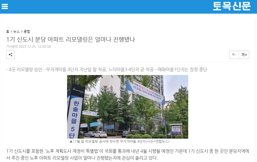기반시설과 아파트 뼈대는 유지하면서 내부/외부를 조금 더 현대화 하는 것