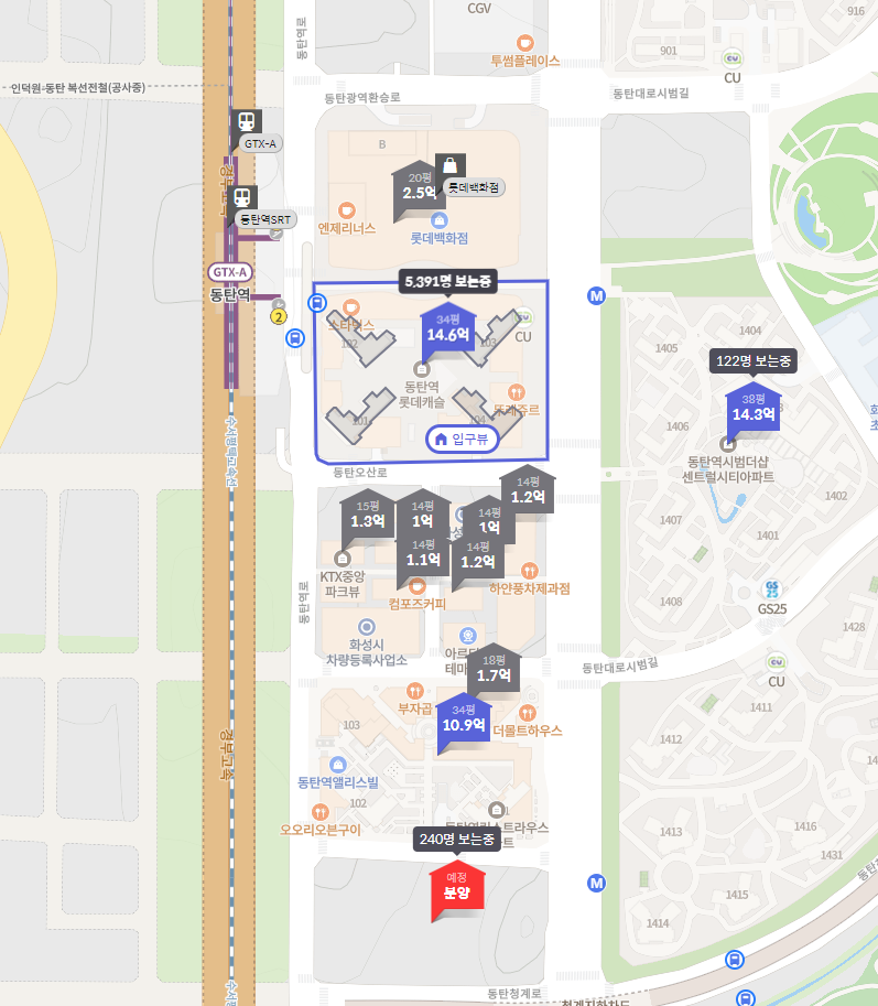 동탄역 롯데캐슬은 SRT, GTX-A 노선이 지나는 동탄역과 바로 연결되어있어 위치도 매우 좋은데요,